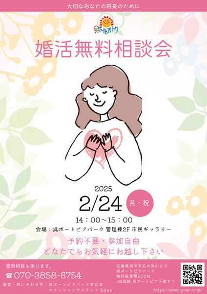 広島・呉市の呉ポーにオフィスのある結婚相談所(婚活サイト)、マリッジコンサルタント Edenです。『成婚第一主義』の弊社では、これまでの実績と多くの仲人経験を積んだ優秀なカウンセラー親切丁寧なサービスを心がけ、どなたも“迷いのない活動”ができる“充実のリーズナブル&ワンプラン料金”を実現しました。 無料婚活力診断でおすすめの婚活スタイルをゲットしてください。